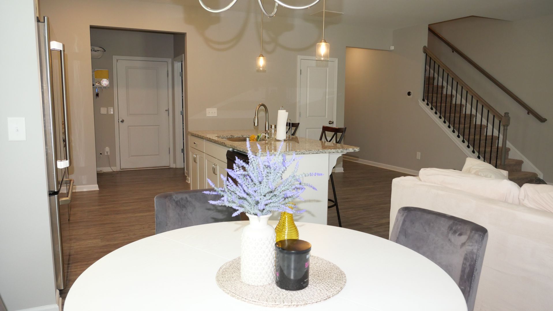Welcome home to this spacious and modern 3-bedroom, 2.5-bath end-unit townhome in the heart of Canton. Built in 2020, this nearly new residence offers a bright open floor plan, stylish finishes, and the privacy and extra natural light that only an end unit can provide. The main level features high 9-foot ceilings, durable flooring, and a welcoming great room with cozy fireplace. The kitchen is designed for both function and style with a breakfast bar, stainless appliances, ample cabinetry, and easy flow into the dining and living areas—perfect for everyday living or entertaining. Upstairs you’ll find a generous primary suite with double vanities and separate tub and shower, plus two additional bedrooms in a desirable split-bedroom layout. Convenient main-level laundry and a two-car garage add to the home’s comfort and practicality. Enjoy outdoor relaxation on the private patio overlooking a landscaped setting. Located in the Parkside community with sidewalks and HOA-maintained common areas, this home offers easy access to downtown Canton, shopping, dining, schools, and major commuter routes. A rare opportunity for a newer, move-in-ready townhome in a fantastic location—schedule your showing today!