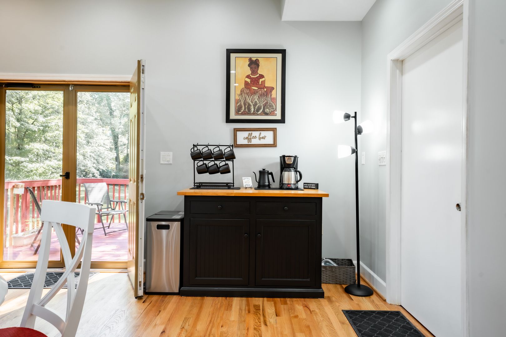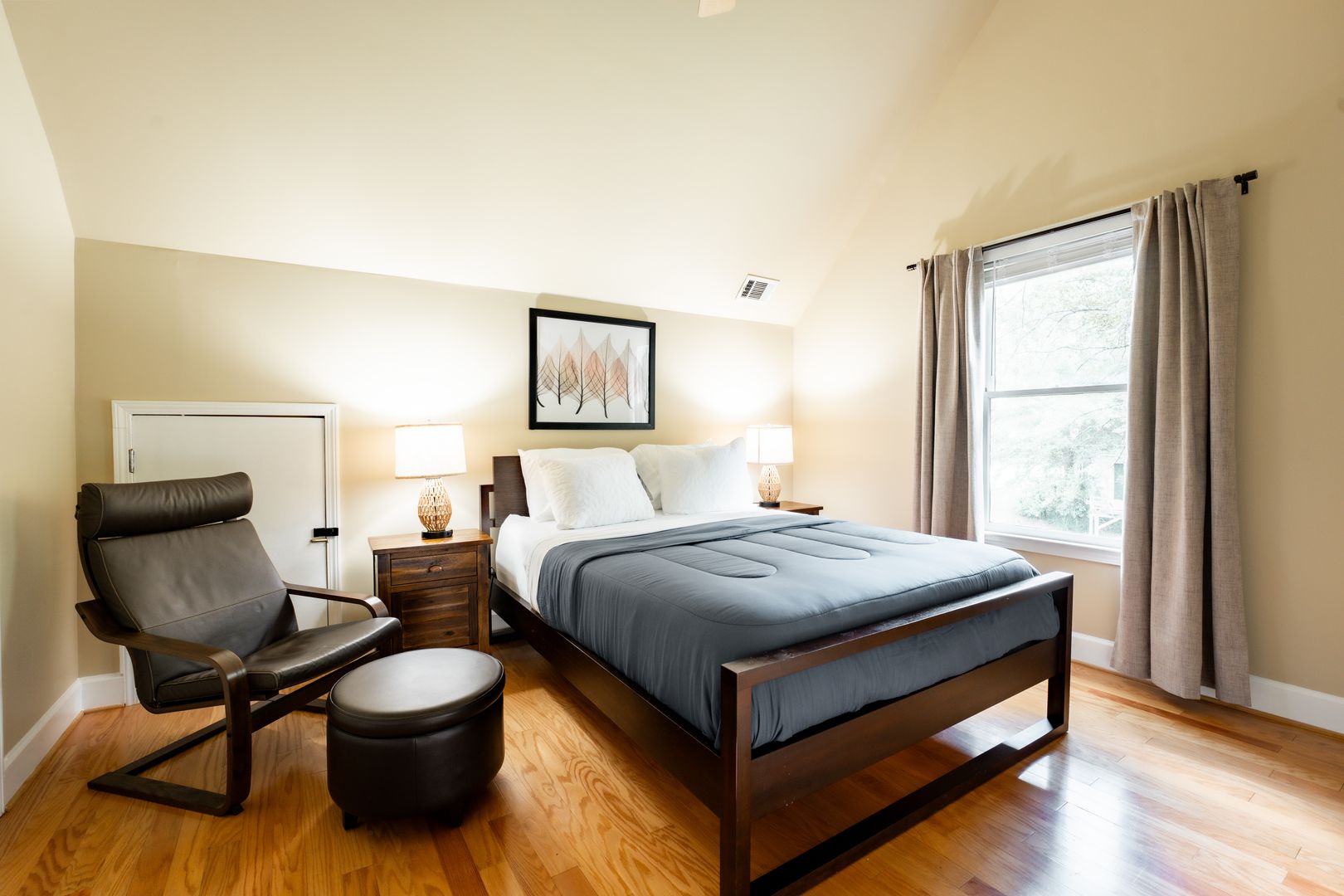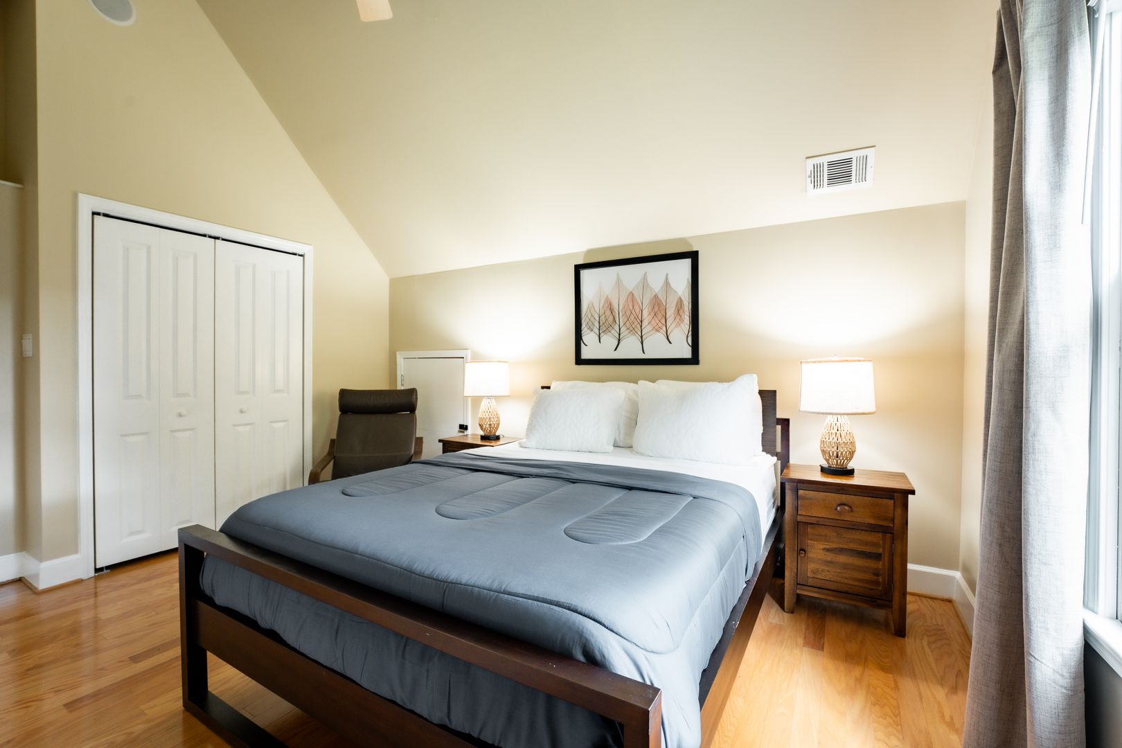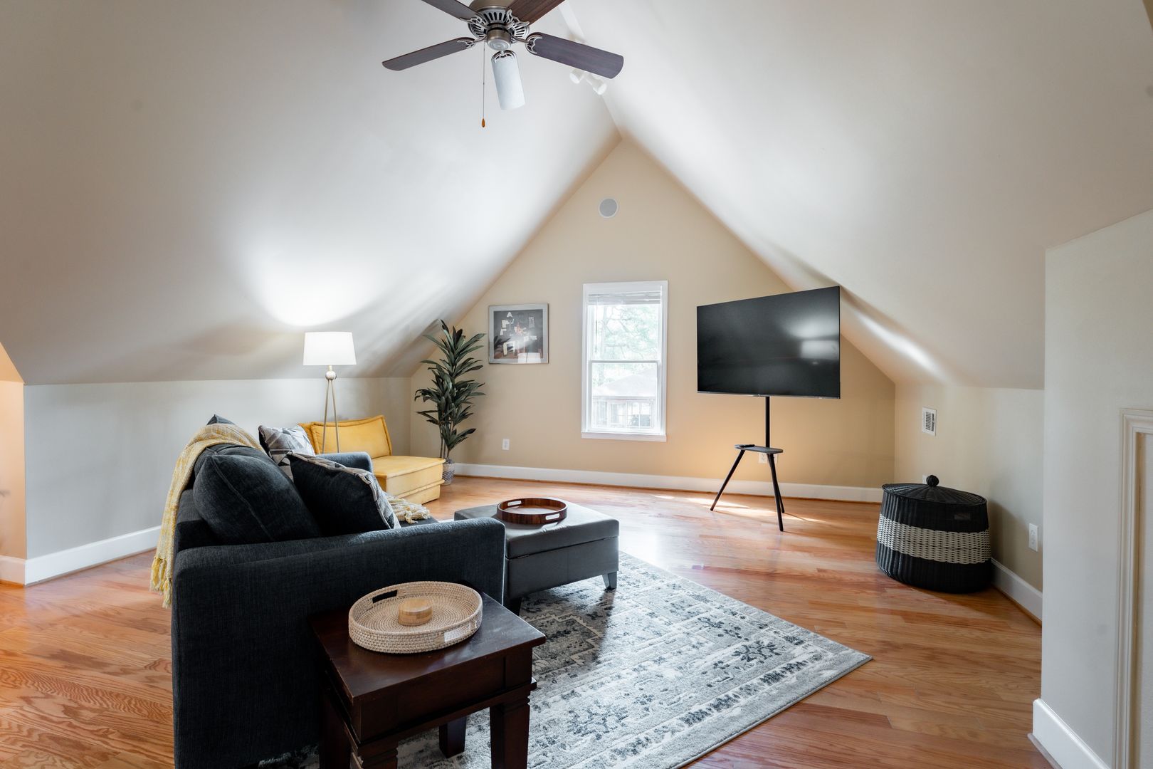 This well-designed two-level home offers a functional layout with a clear separation between living and private spaces, along with the convenience of a 2-car garage equipped with an electric vehicle charging station. The main level includes an eat-in kitchen, half bathroom, and laundry area, providing easy day-to-day living and direct access to the garage. Upstairs, the home opens into a bright and spacious great room with vaulted ceilings and abundant natural light. This level also features a dedicated desk/work area, a private bedroom, and a full bathroom, creating a comfortable and flexible living environment. With hardwood floors throughout and a layout that supports both living and working from home, this property offers a practical and comfortable space in a convenient location close to shopping, dining, and major routes.